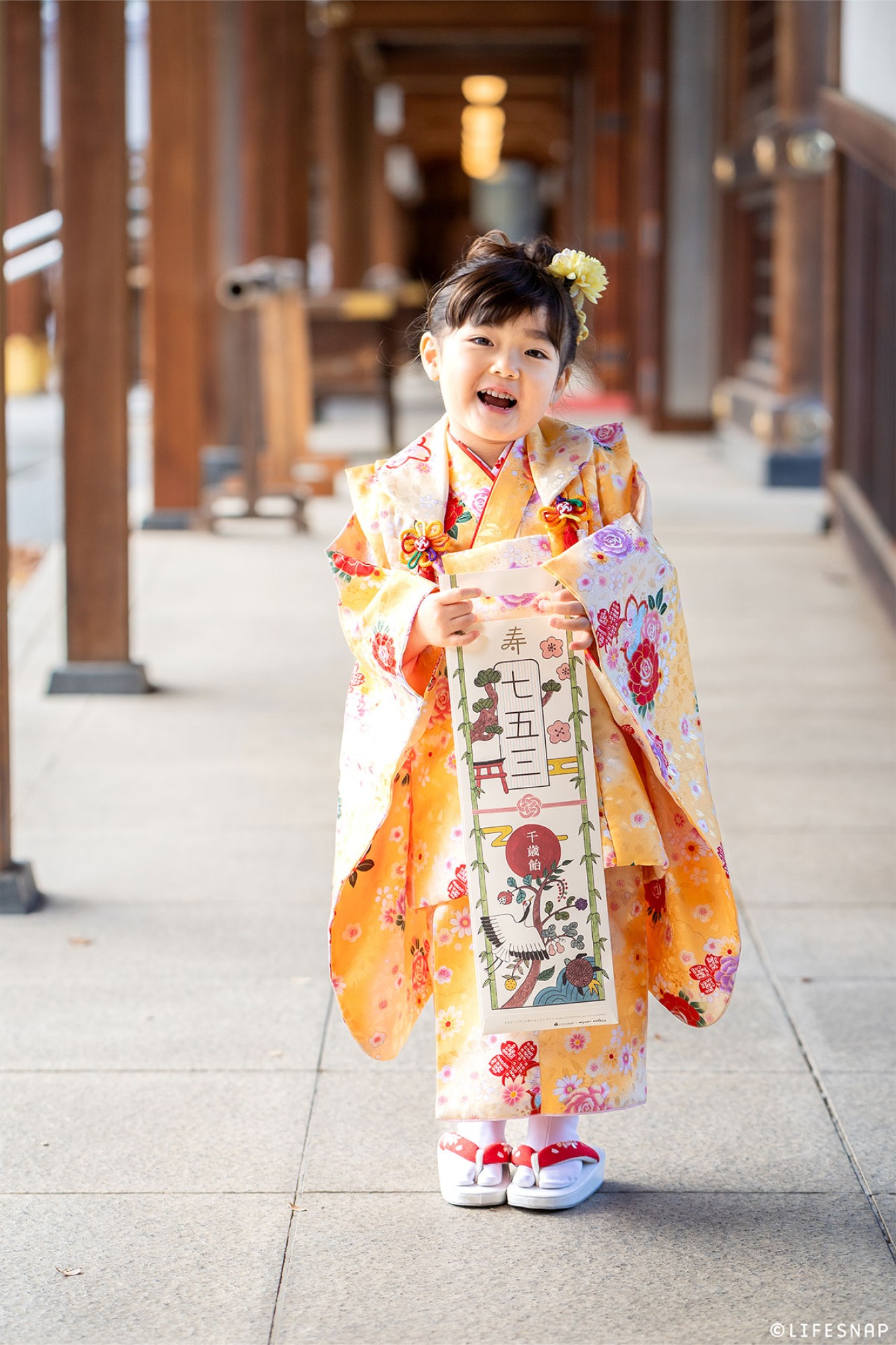 七五三撮影にかかせない千歳飴袋。当日、神社でいただいたり購入できることもありますが、事前にご確認いただくと安心です。あらかじめご用意されている方は、忘れずにお持ちくださいませ。