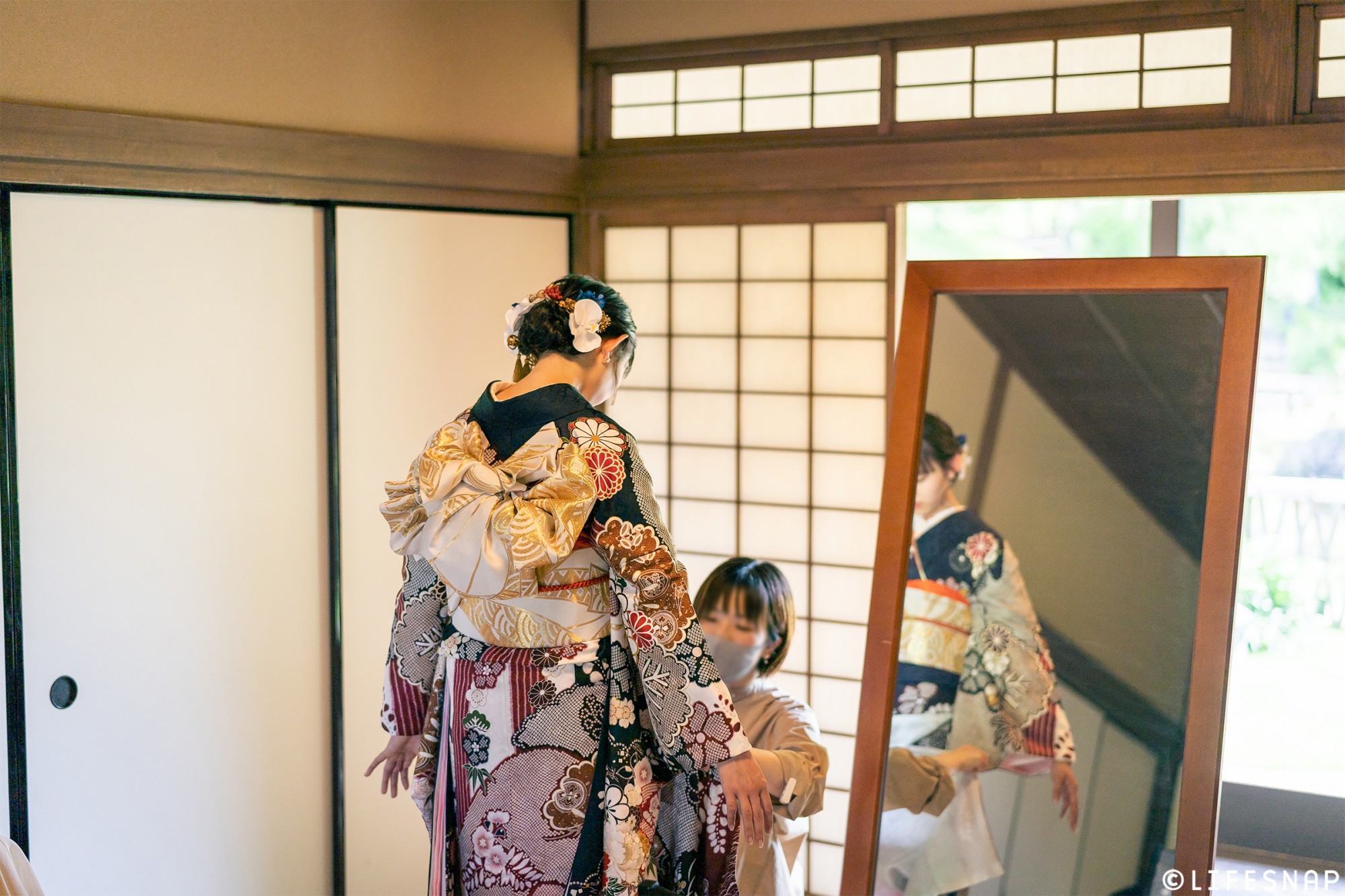 LIFESNAPで撮影をされる方は、オプションとして出張着付けサービス(ヘアメイクも対応可能です)も承っており、成人式シーズンにかぎらず、ハレの日の装いのお支度にお役立ていただけます。