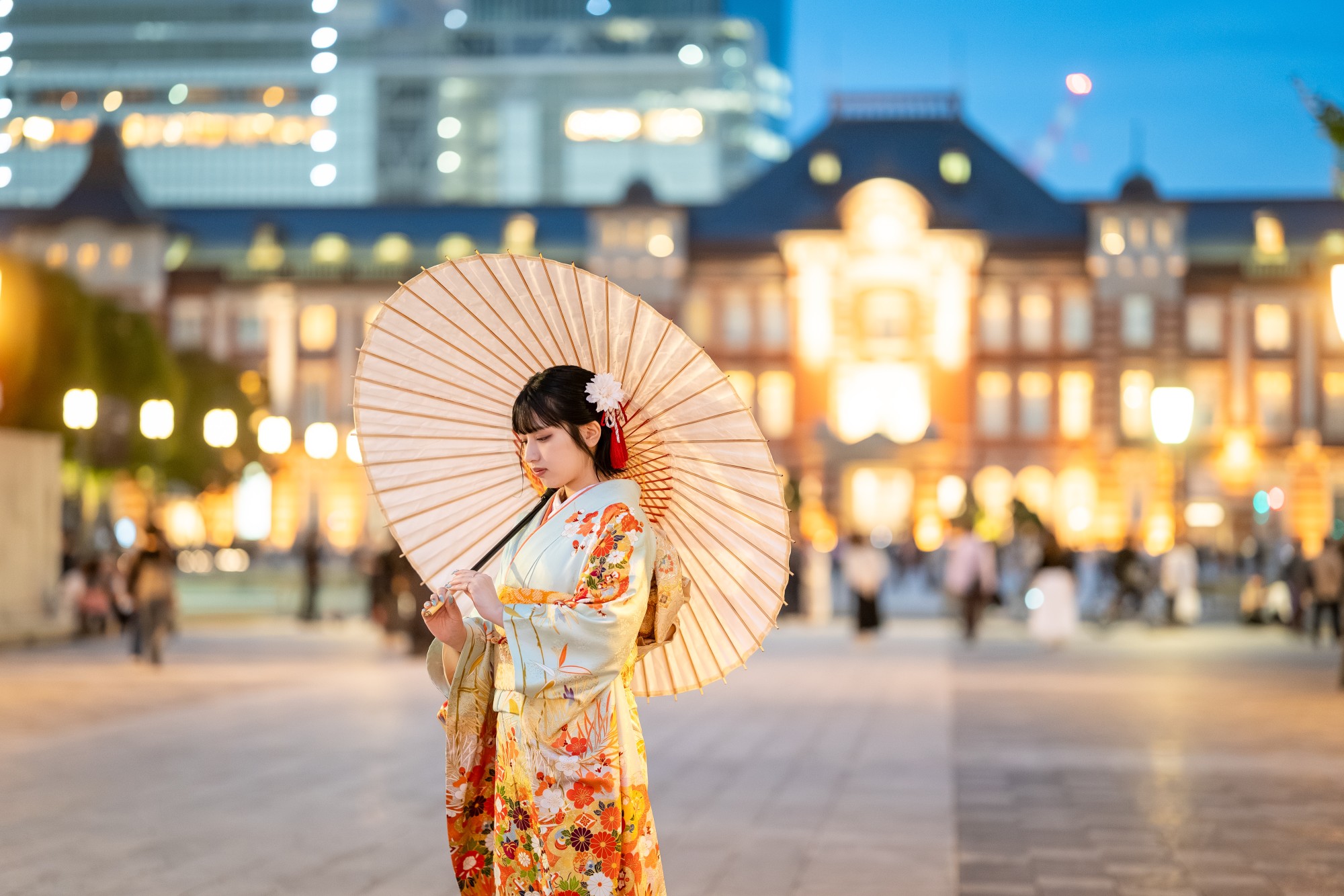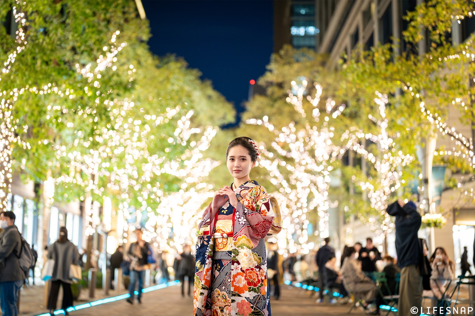 LIFESNAPで人気のロケ地、東京駅丸の内エリアでは、ウィンターシーズンにイルミネーションが灯ります。日が暮れる少し前から撮影をスタートするとライトアップされた街の景色も楽しめます◎