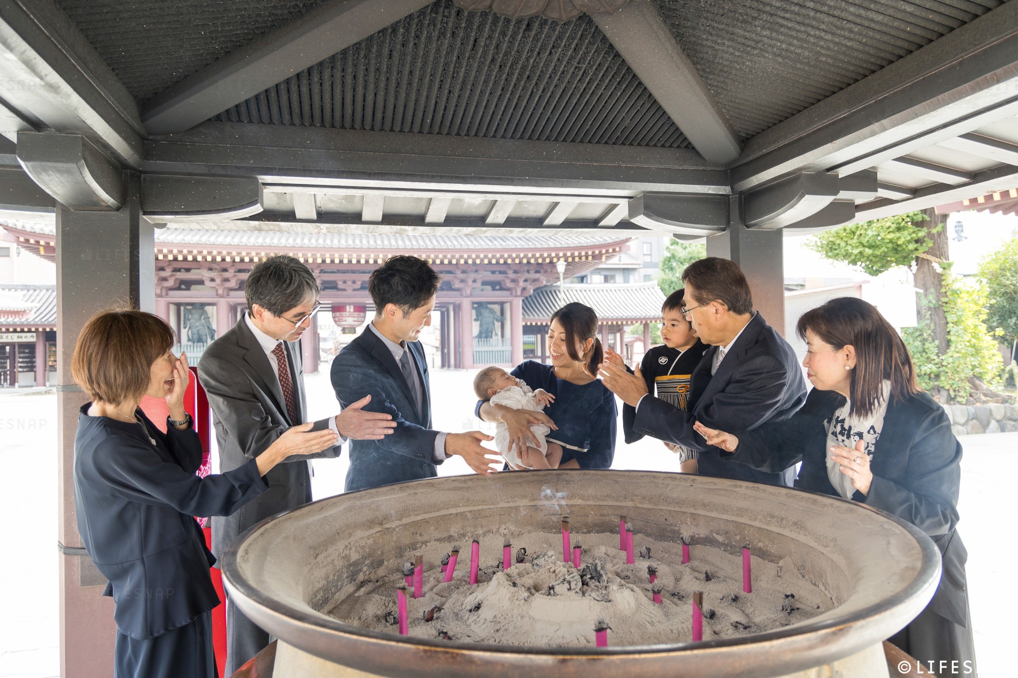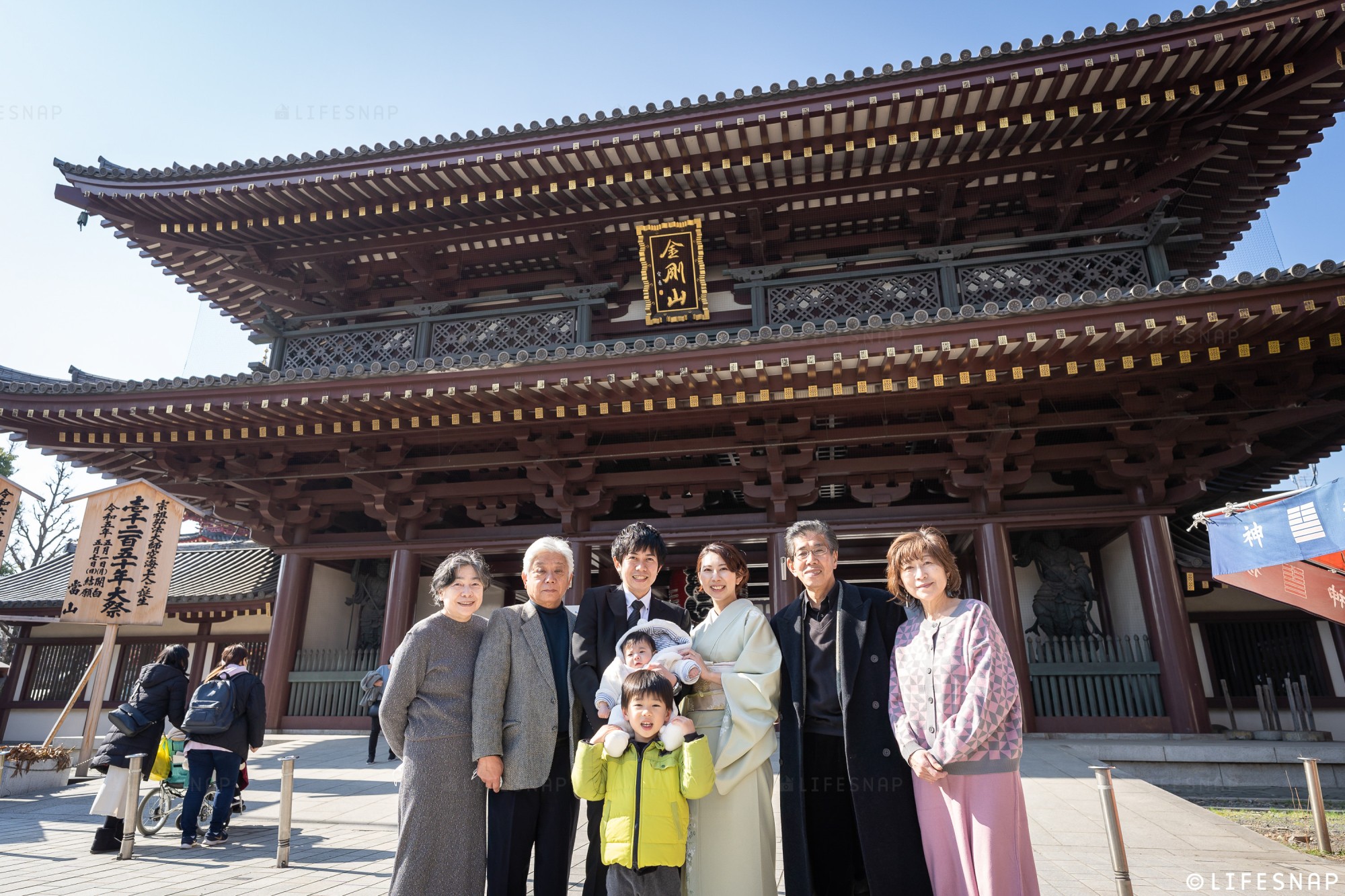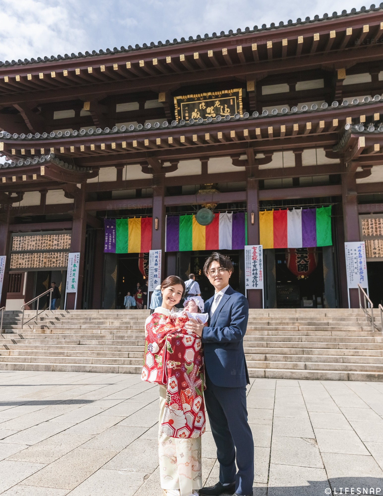 お宮参り・七五三のプロフェッショナル家族写真の出張撮影専門のLIFESNAP(ライフスナップ)はおかげさまで13年目!これまでにお伺いの多い人気の寺社の中から、今回は神奈川県川崎市にある川崎大師での初参り(お宮参り)についてご紹介します!