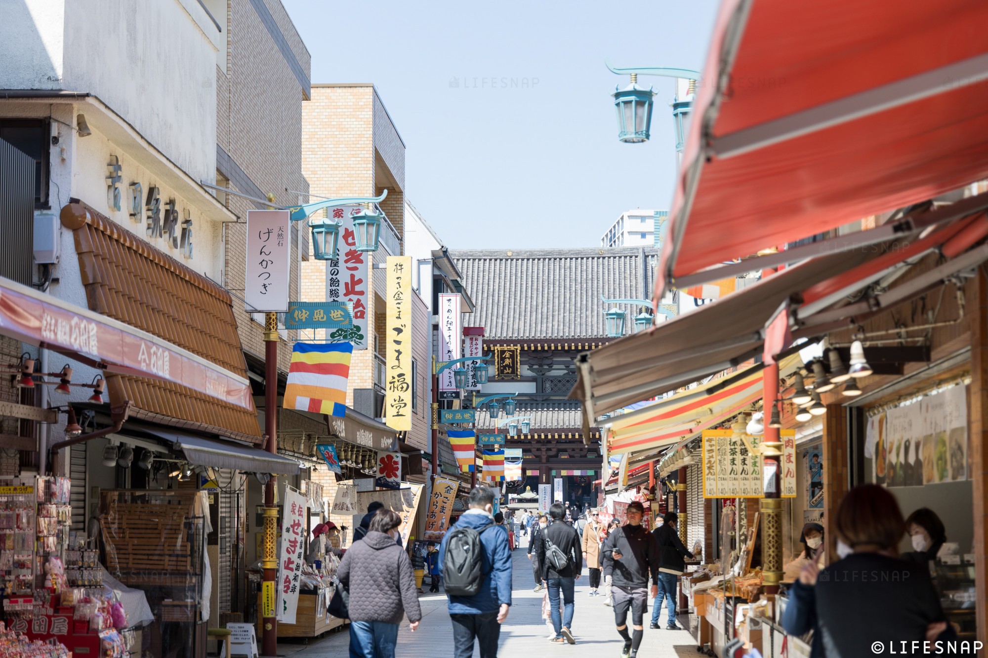 川崎大師の駅から続く仲見世通りは、年間を通じて賑わいを見せています。銘菓の「久寿餅」をはじめ、「大師巻」と呼ばれるおせんべいに「とんとこ飴」といった名物がたくさん、思わず足を止めたくなってしまいます。