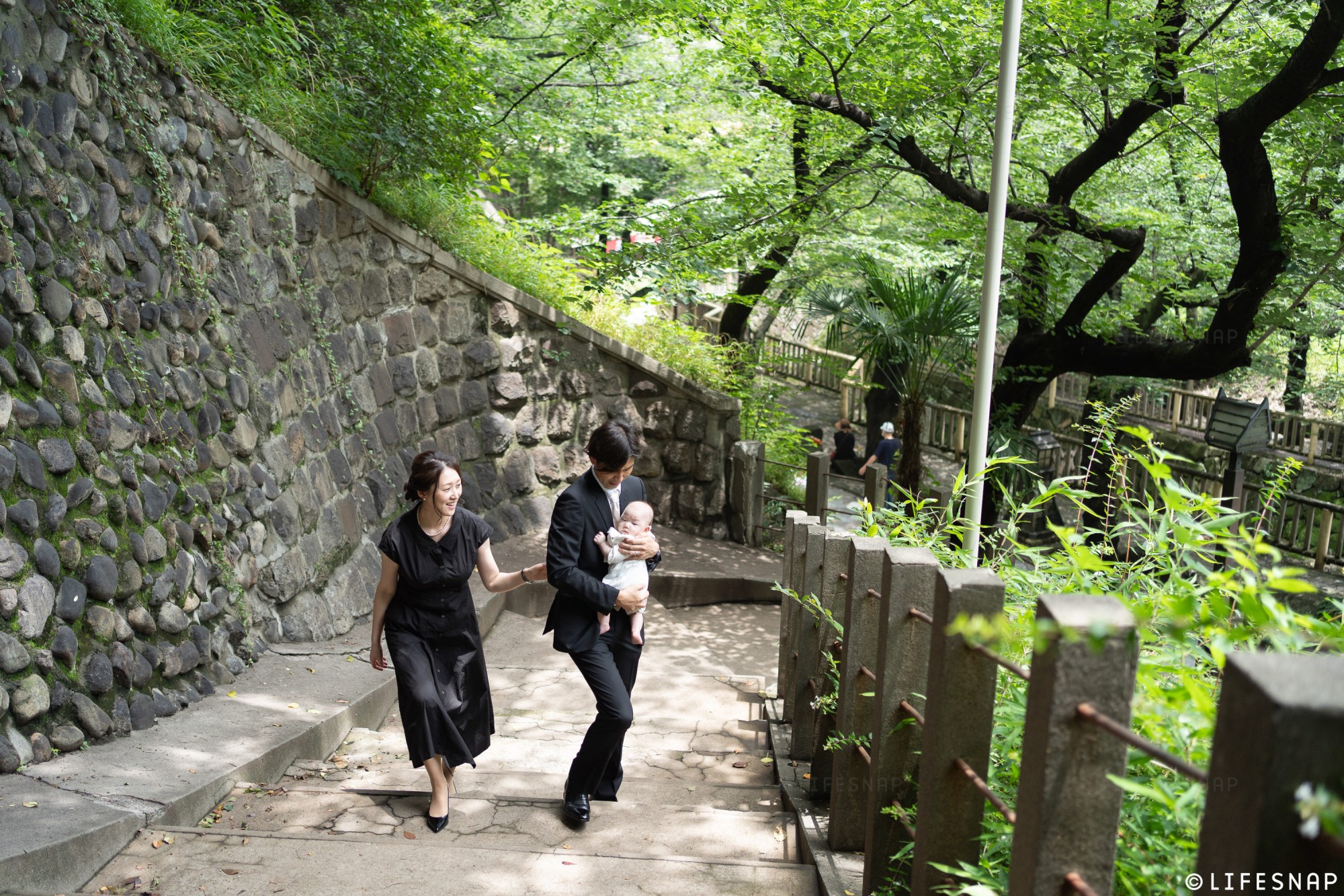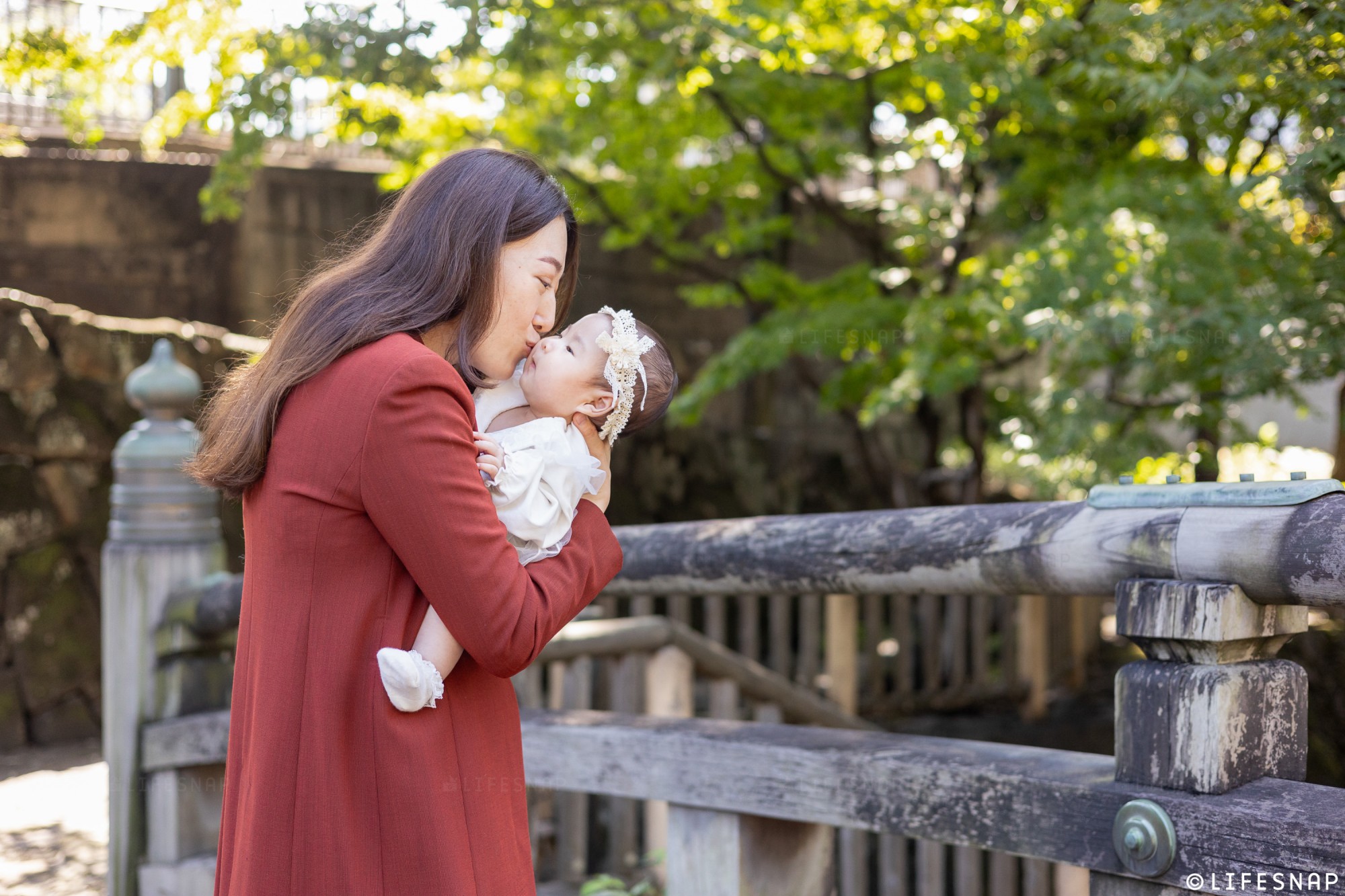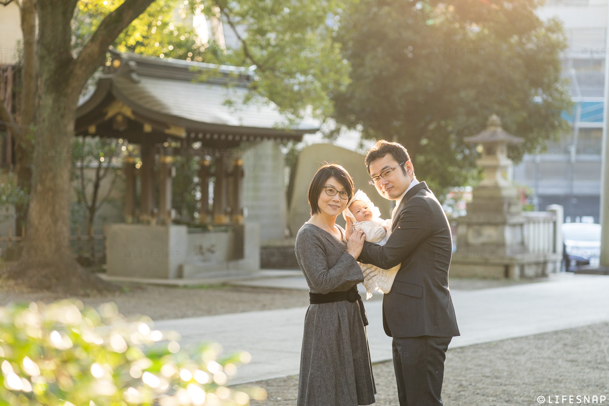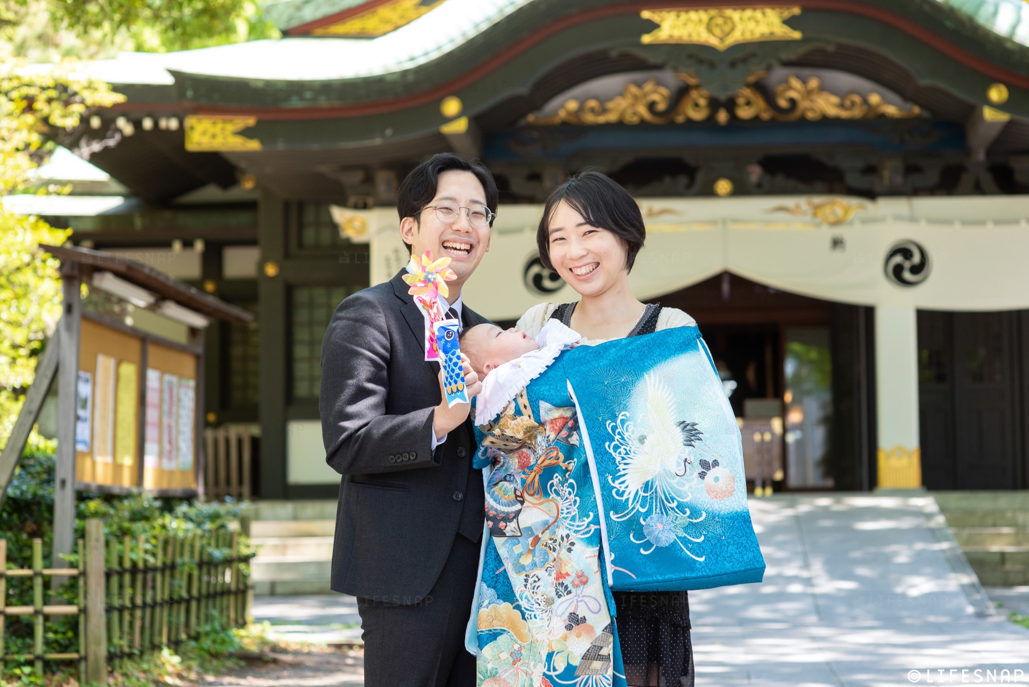 「子育大願」のご利益でも知られるこの場所は、お子様の健やかな成長を願うご家族を、いつも温かく包み込んでくれるような安心感があります。緑豊かな境内や、隣接する親水公園のせせらぎなど、豊かな自然に囲まれたロケーションは、ご家族の自然な表情を引き出すのに最適な環境です。