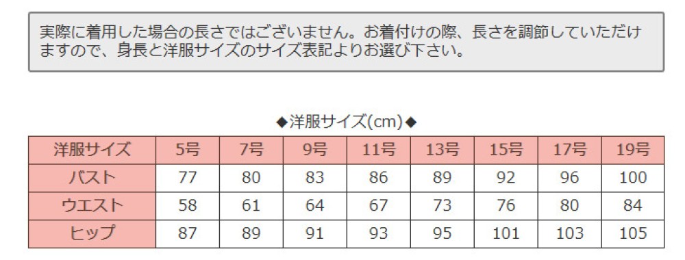※対応サイズは下記の「洋服サイズ」を参考にご判断ください。